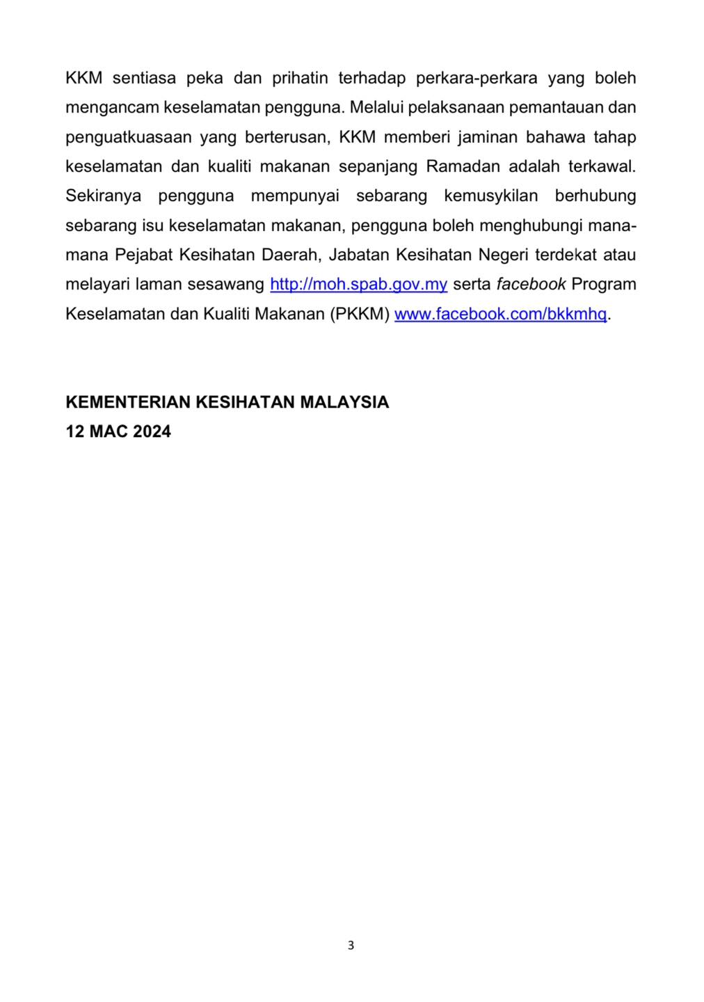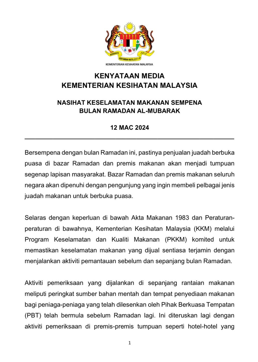 Nasihat Keselamatan Makanan Sempena Bulan Ramadan Al-Mubarak