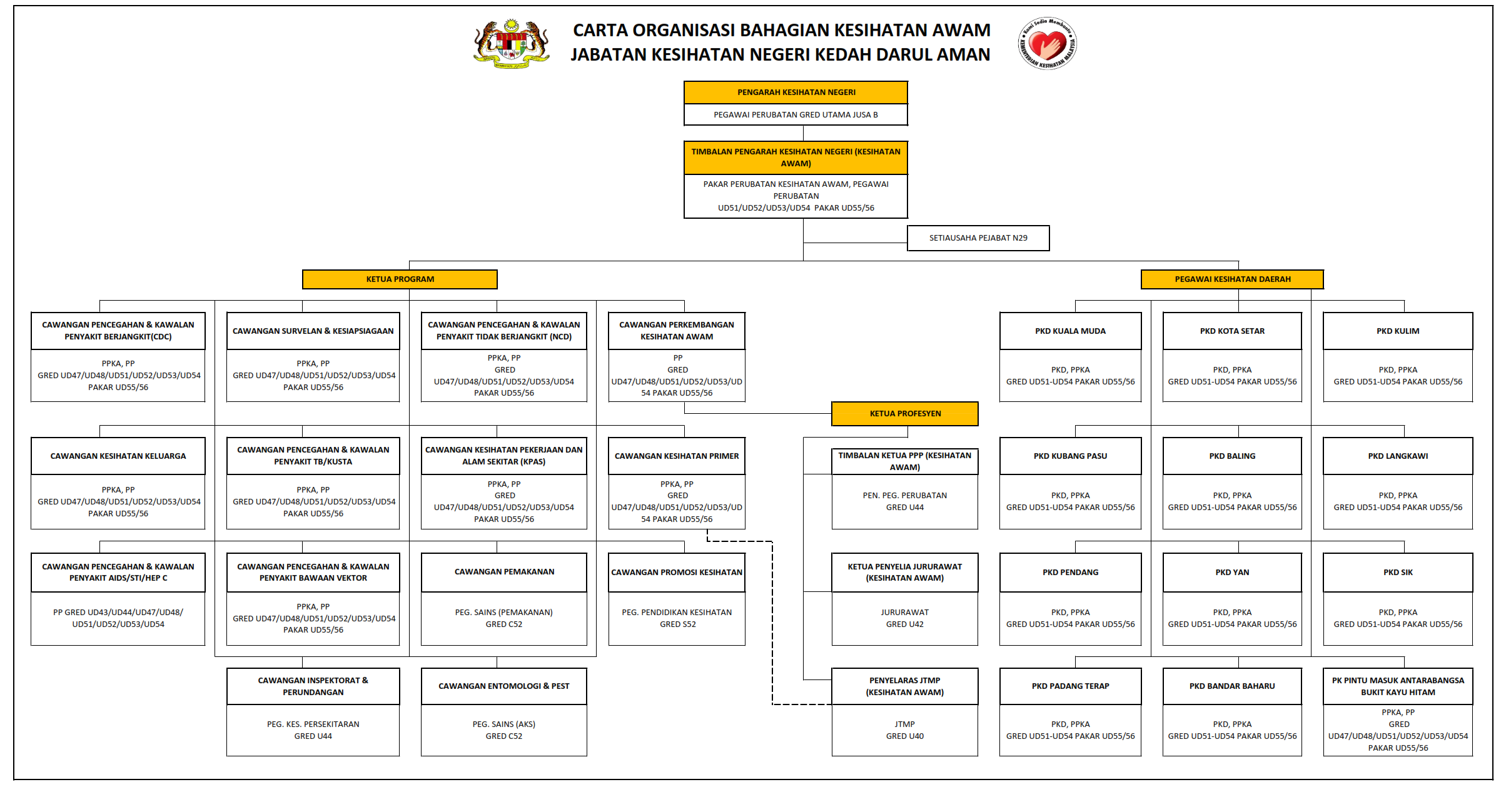 Terdapat pecahan 15 unit di bawah Bahagian Kesihatan Awam. Unit-unit tersebut adalah :